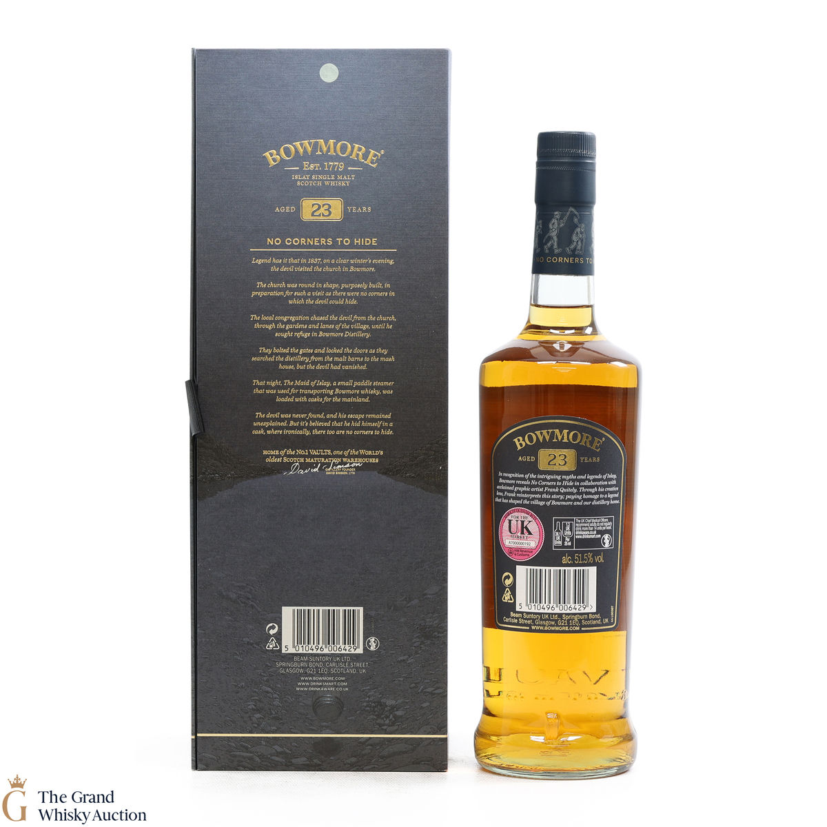 The limited release Bowmore No Corners to Hide 23 Year Old was matured for 21 years in ex-bourbon American oak hogsheads and finished for two years in Essencia barriques. Bottled at 51.5% ABV.