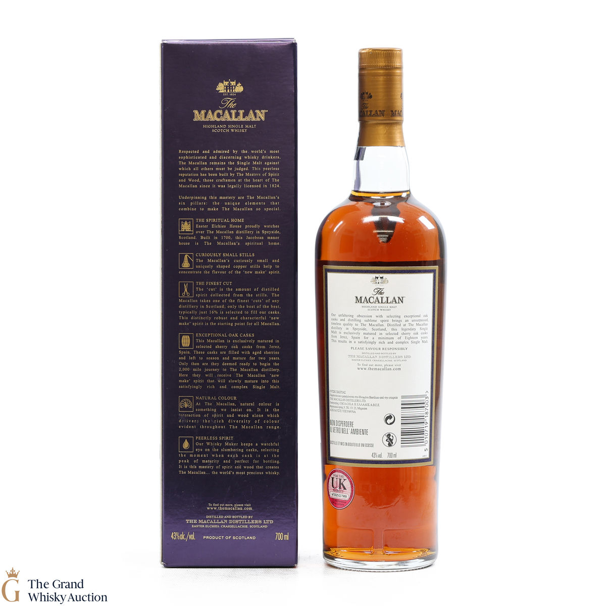 Due to the various ages of bottles and their seals, the condition of liquid is at the buyer's discretion and no claim can be lodged against failure/leakage in transit. Loss and breakage cover is available at 3% of the hammer price as standard. If the lot is not insured, no claim can be lodged against the courier or The Grand Whisky Auction for breakage or loss in transit.
