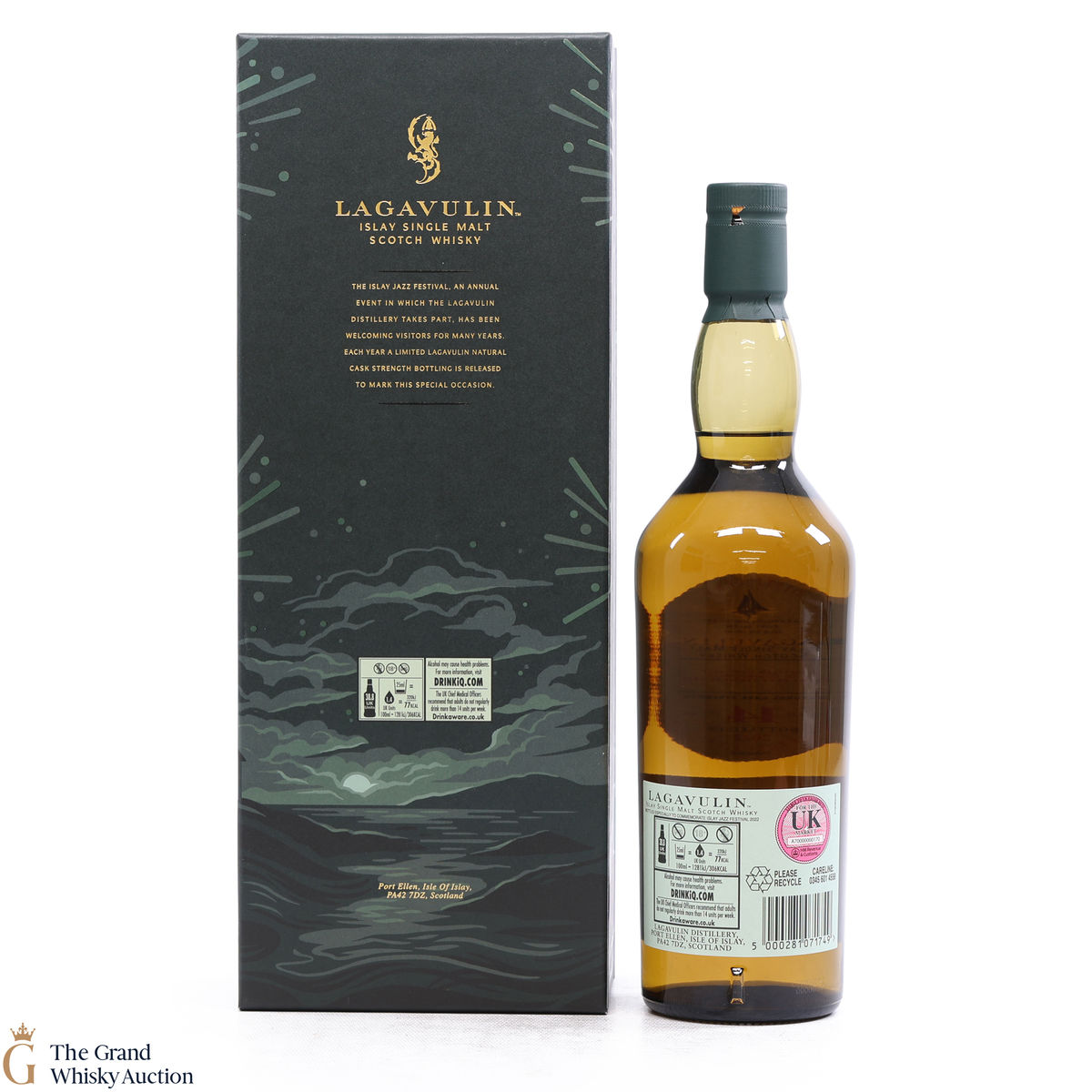 A bottling only released at the distillery bottled especially to commemorate the 2022 Jazz festival on Islay. This is one of only 3000 bottles that has uniquely been matured in refill American oak and then finished in brandy seasoned hogsheads. This has added an unexpected twist of sweetness to typical Lagavulin smokiness. Bottled at the cask strength of 55.4%.