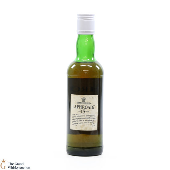 A smart old bottle of Laphroaig, bottled before the Royal Warrant in 1994. Laphroaig 15 Year Old is smoother than the robust 10-year-old. This is a half bottle - 33.33cl
