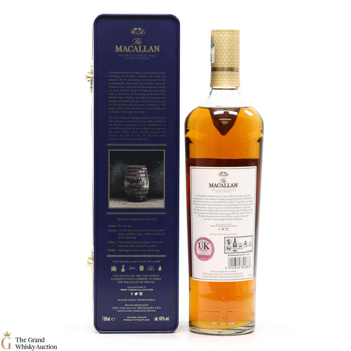 This Macallan 12 Year Old Double Cask matured in a mixture of European and American oak casks that have previously contained Sherry, as well as American oak casks which have contained Bourbon. It comes presented in a limited edition tin.