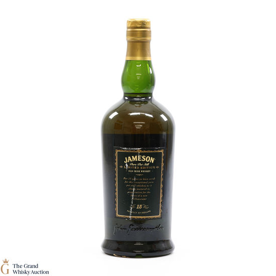 A bottle of Jameson 15-Year Old Limited edition Pure Pot Still Irish whiskey - triple distilled, matured oak casks and bottled for the Millennium.
