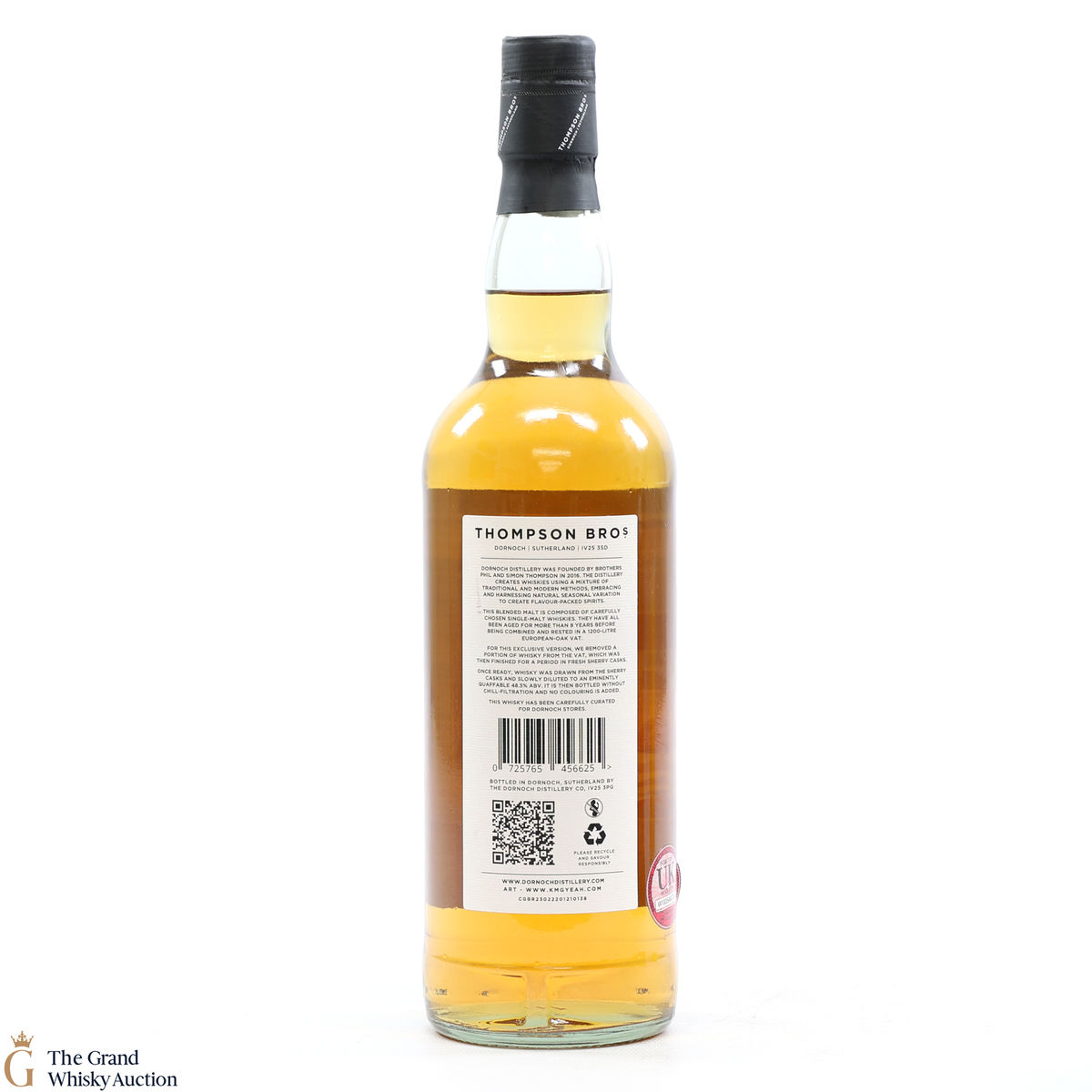 This Thompson Bros blend was bottled for Dornoch Stores. Aged 8 years with a finishing period in sherry casks. One of 120 bottles at a strength of 48.5% abv.