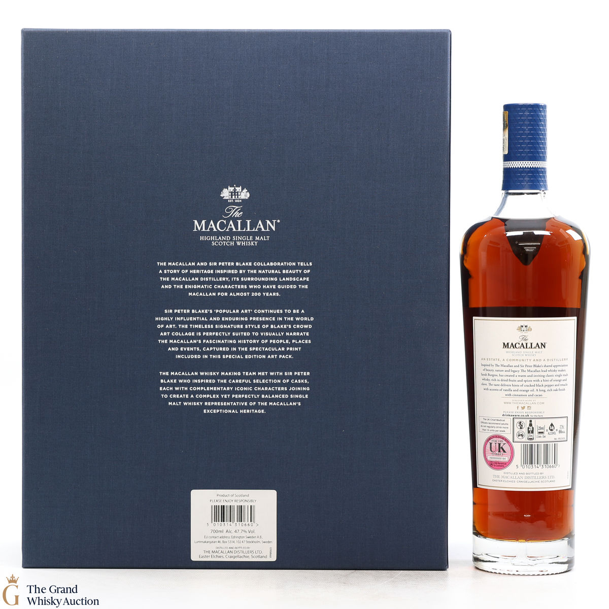 Part of The Anecdotes of Ages Collection, this is an extraordinary art and whisky collaboration with Sir Peter Blake. Being the third collaboration between the Macallan Distillery and Sir Peter Blake, this single malt was created to commemorate Sir Peter Blake's visit to The Macallan Estate. An Estate, a Community and a Distillery tells the story of some of the colourful characters from the distilleries past and present and features a label designed by Sir Peter Blake.
