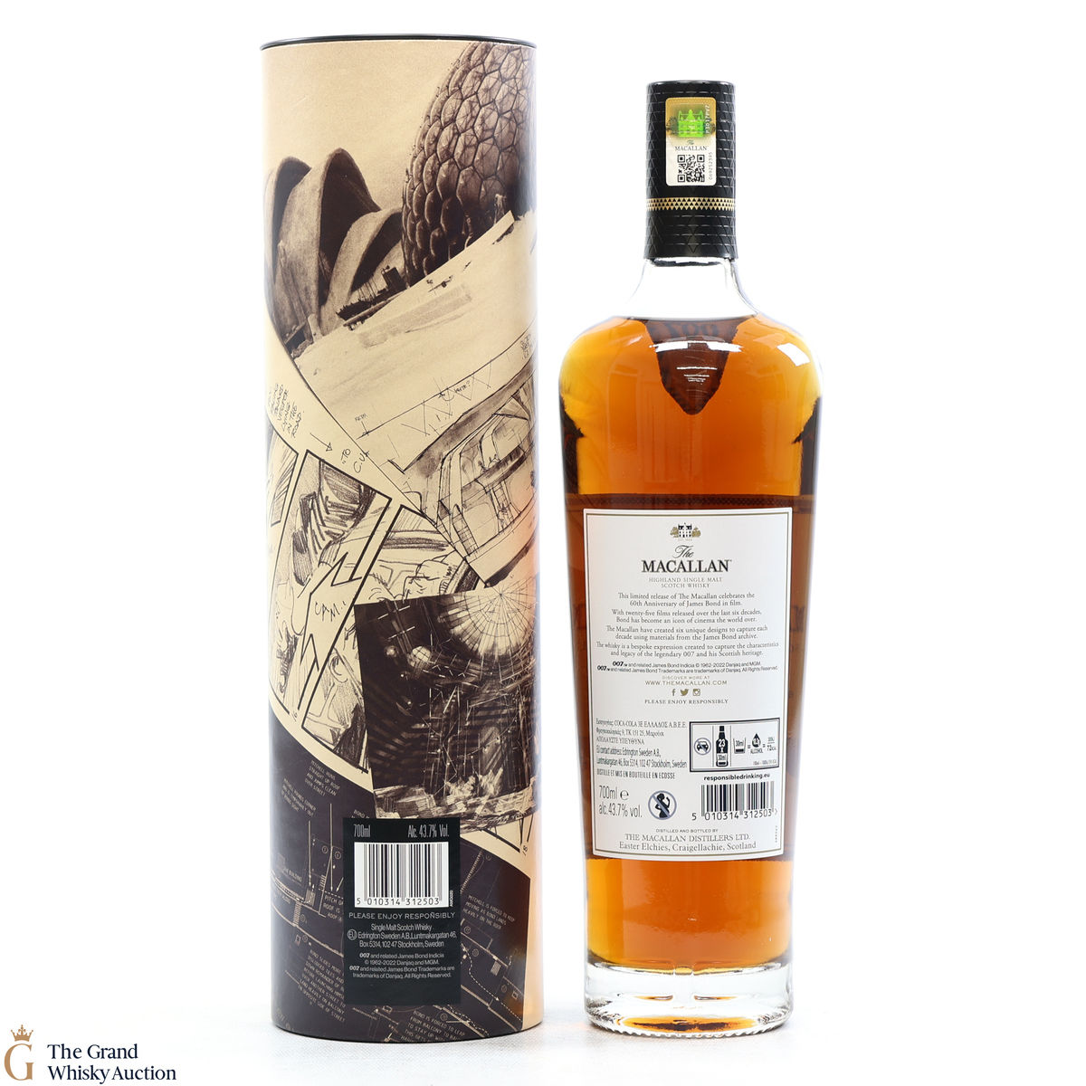 The remarkable James Bond 60th Anniversary Release is a celebration of 007 and The Macallan as modern innovators linked by their Scottish heritage. Each bottle’s packaging features an original illustrative design and colour to denote the decade it represents.