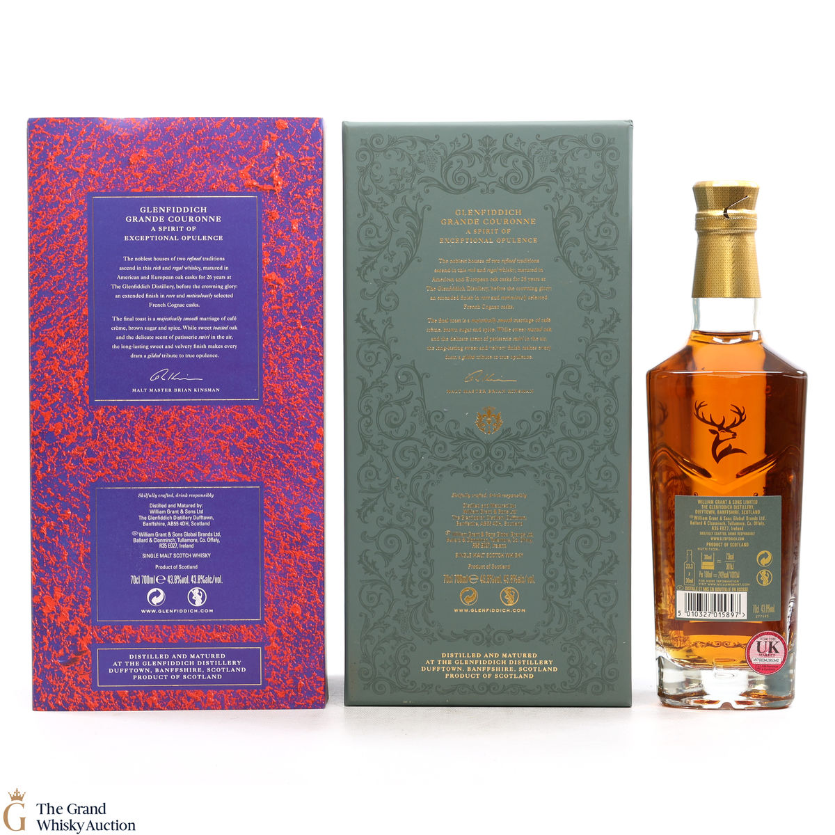 This 26 year old single malt is the highlight of the Glenfiddich Grand Series, whiskies which celebrate the merging of two worlds coming together. After maturing at the Glenfiddich Distillery, Grande Couronne has an extended two-year finish in rare French Cognac casks.