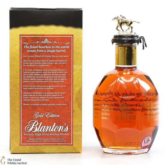 PLEASE NOTE: The wax seal on Blanton's bottles are prone to cracking in transit due to their design. Therefore, as stated in our T&C’s, we do not and will not accept liability should the seal be breached, broken, split or leak in transit. Additionally, please know due to the design of the internal cardboard packaging that surrounds the top of the bottles, it too may be torn. By bidding on this lot you have understood this to be true. Insurance is for complete breakage or loss in transit only.