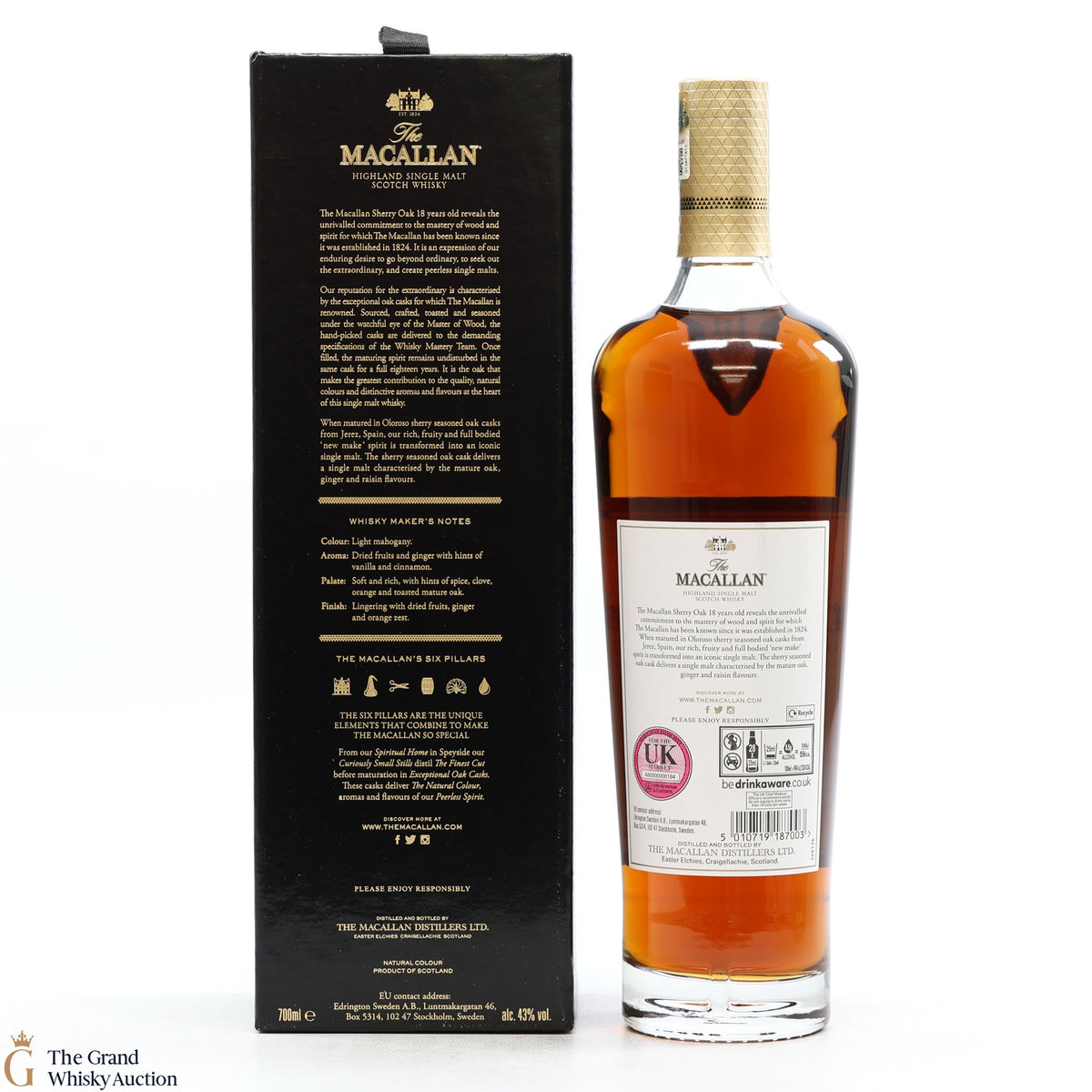 This annual release of The Macallan's popular 18 Year Old Sherry Oak is matured exclusively in sherry-seasoned casks, built from both Spanish and American oak, providing a beautifully dark flavour with rich aromas.