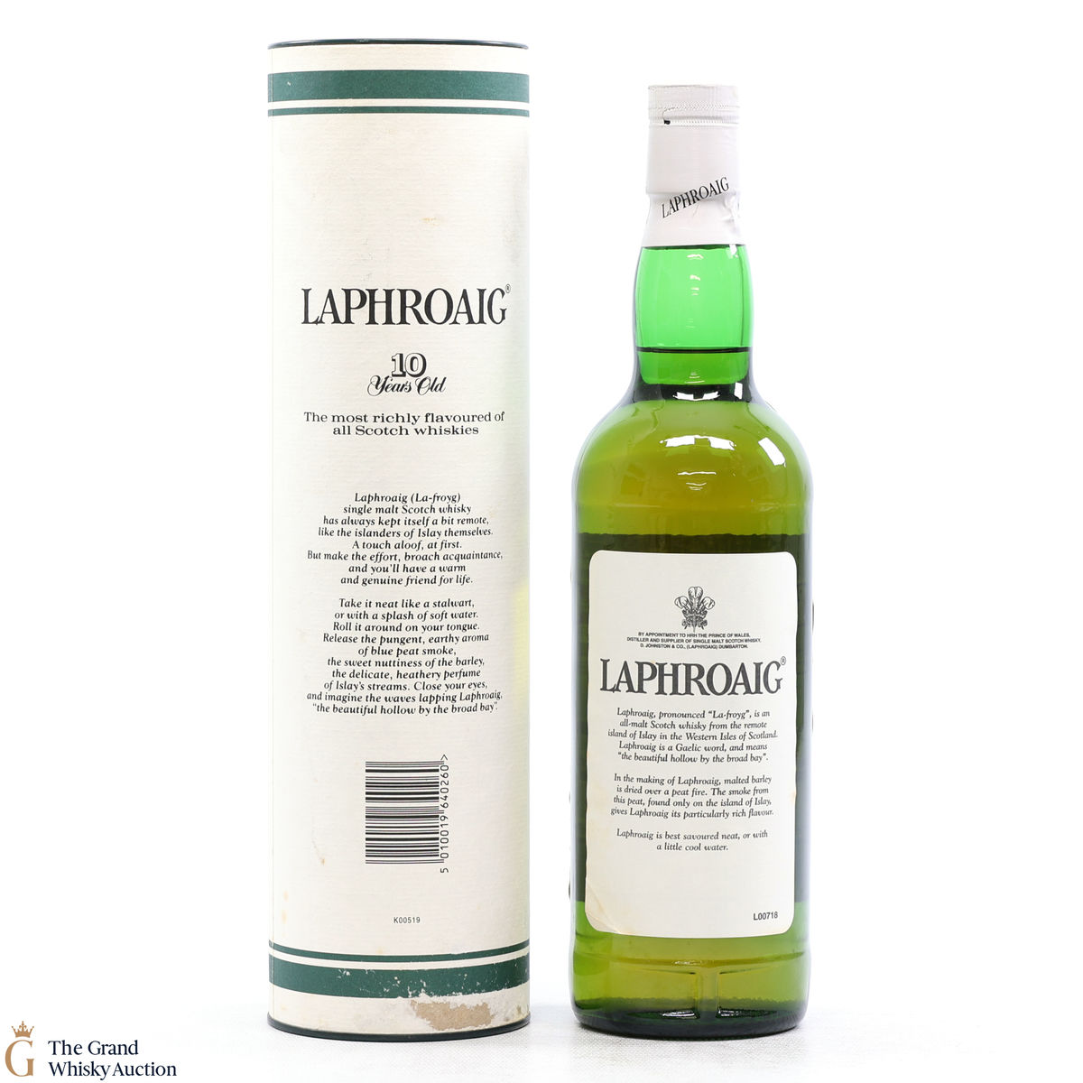 A 70cl of the medicinal 10-year-old from Islay's bestselling distillery, Laphroaig. In making Laphroaig, malted barley is dried over a peat fire. The smoke from this peat, found only on Islay, gives Laphroaig its particularly rich flavour.
