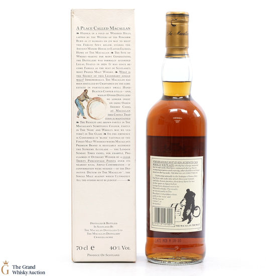This is an older style of bottling of the famous Macallan 10-year-old malt whisky. This malt was matured in sherry wood.