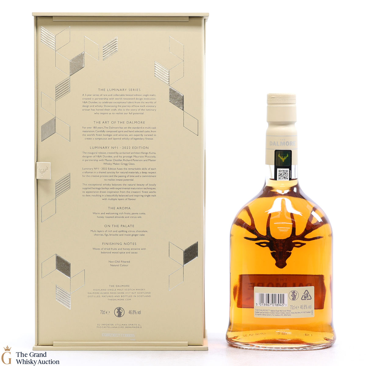 Dalmore is working with architect Kengo Kuma and protégé Maurizio Mucciola to create this single malt. After of 15 years aging in both Italian Amarone red wine casks, virgin "Kintsugi" casks crafted from a selection of Scottish Tay oak, Japanese mizunara, and American white oak.