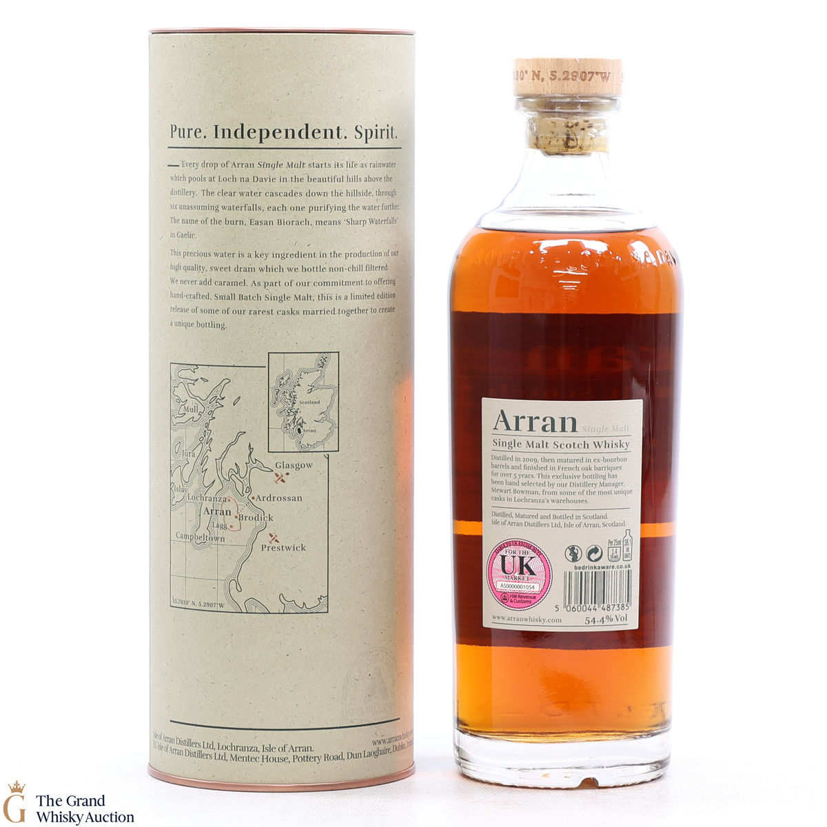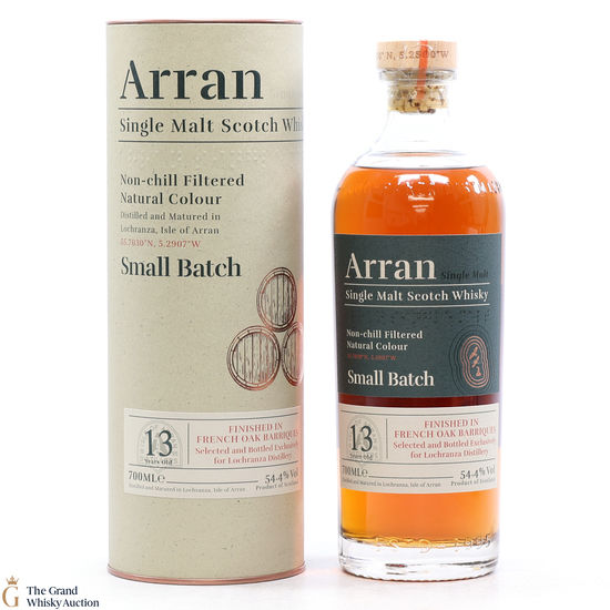 This Arran small batch release was matured for 13 years, including a finishing period in French Oak Barrriques for 5 years It was produced as a distillery exclusive having been bottled at a strength 54.4% abv.