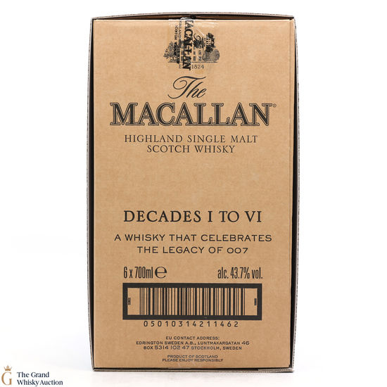 Macallan - James Bond 60th Anniversary - Decade I - VI & Globe-Trotter Case (6 x 70cl)