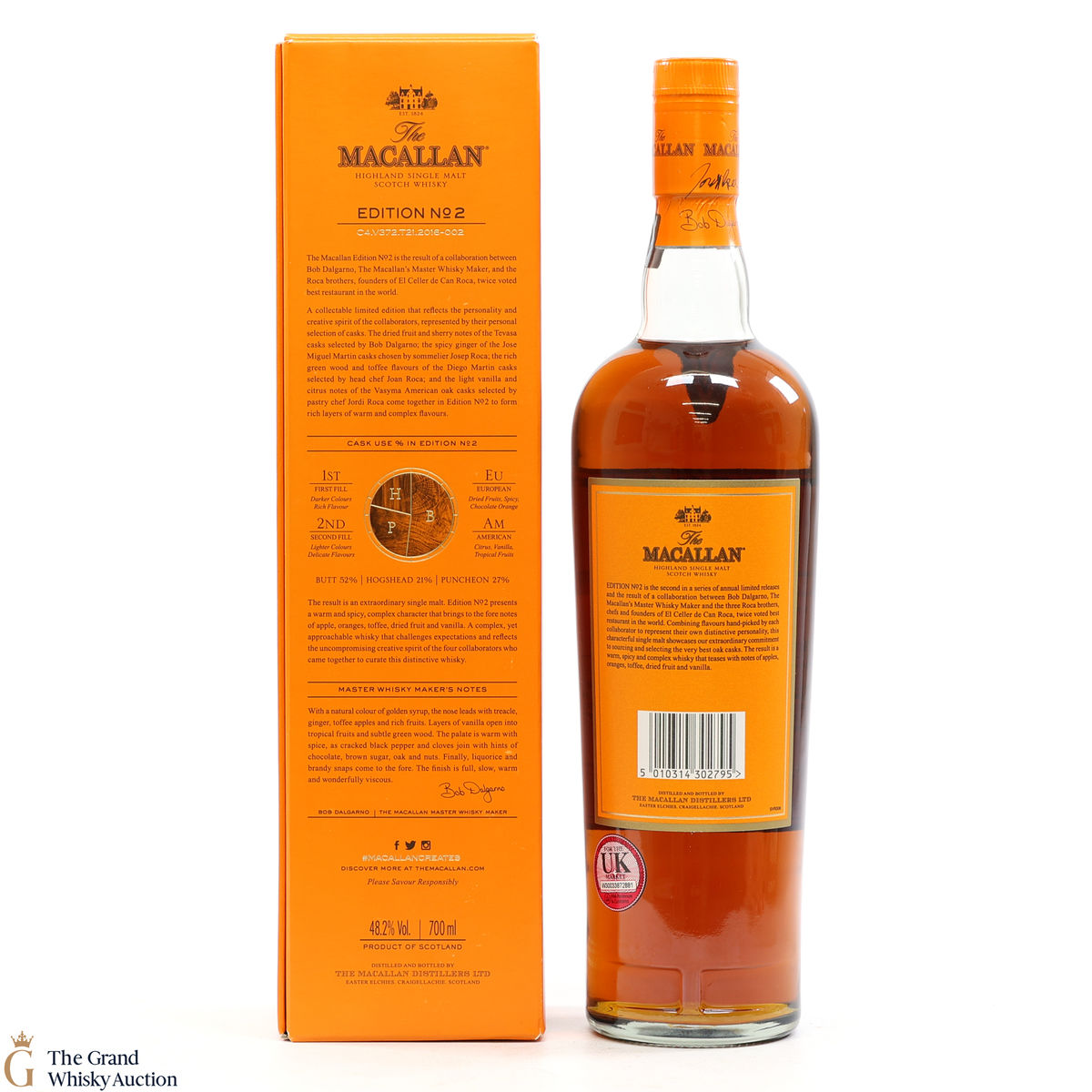 This is the second release from the Macallan Edition series. Edition No.2 is a collaboration between Macallan's master blender Bob Delgarno and legendary Spanish chefs Joan, Josep and Jordi Roca. The Rocas are the three brothers behind El Celler de Can Roca (named Best Restaurant in the World twice by Restaurant magazine). This single malt was drawn from a combination of sherry puncheons, butts and refill hogsheads.