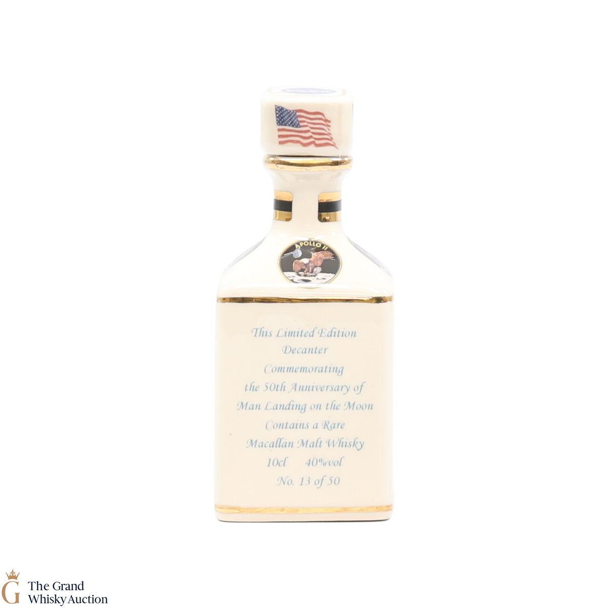 A mini decanter commemorating the 50th Anniversary of Man Landing on the Moon. Filled with a rare Macallan, this is one of 50 bottles released.