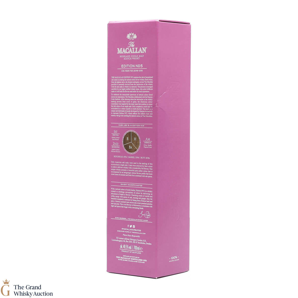 The fifth release in the Edition Series from The Macallan, The Macallan Edition No. 5 celebrates The Macallan’s extensive natural colour spectrum and the intricate whisky-making process, in partnership with masters at the Pantone Color Institute™ to create a unique shade of purple that features on the packaging.