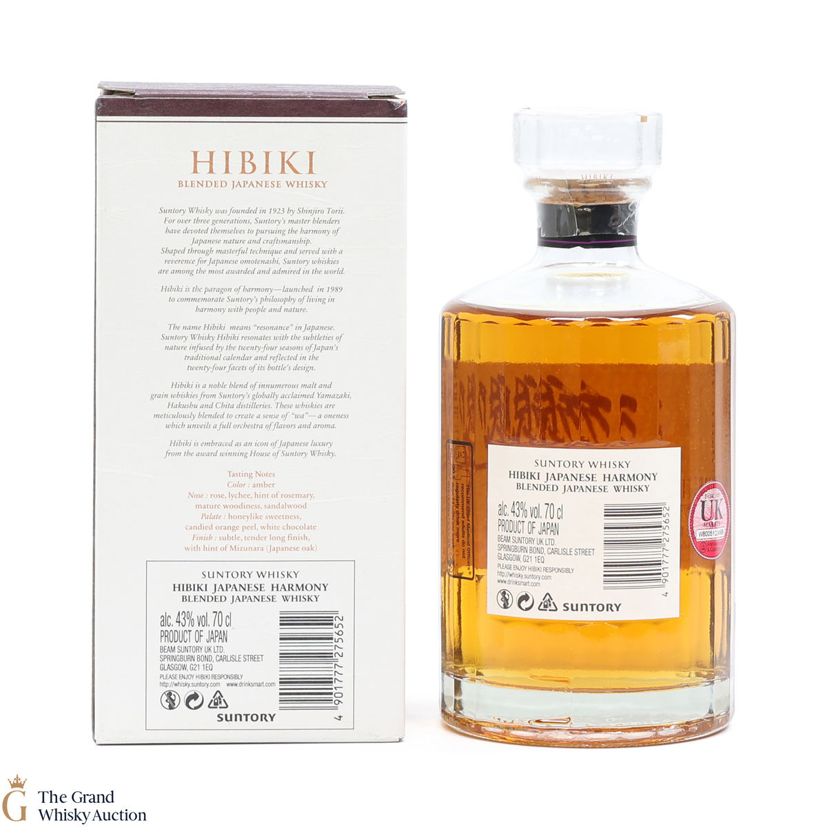 Hibiki Japanese Harmony is made with malt whiskies from the Yamazaki and Hakushu distilleries, as well as grain whisky from the Chita distillery. The whiskies are drawn from 5 different types of cask, including American white oak casks, Sherry casks and Mizunara oak casks. The blend itself was crafted by the Suntory Whisky blending team, led by Master Blender Shingo Torii. An elegant expression, with wafts of honey, orange, a herbaceous touch or two and light oak