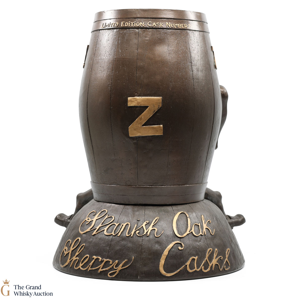 This is a limited edition Macallan barrel figure. A sleeping barrel to represent the whisky ageing in their casks. Embossed with gold writing reading "Spanish Oak Sherry Casks", each limited edition piece is numbered.