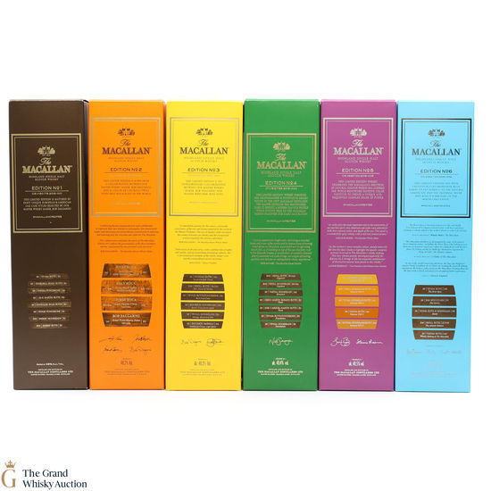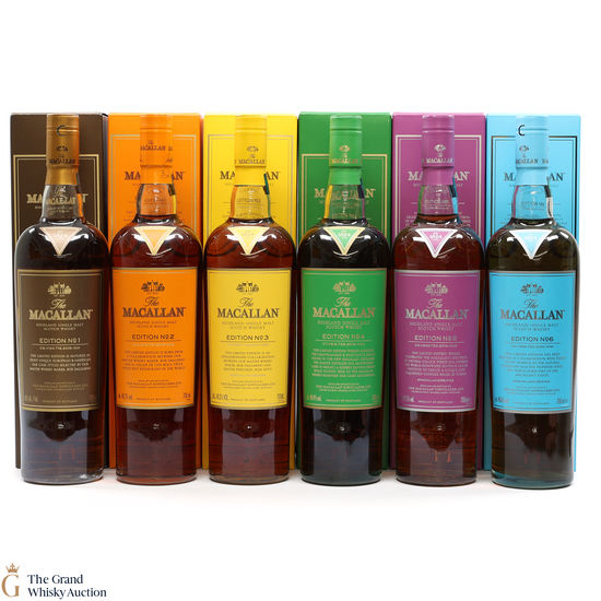 This lot brings together the Macallan Edition set, comprising Edition No.1-6 in the annual limited edition series 2015-2020.