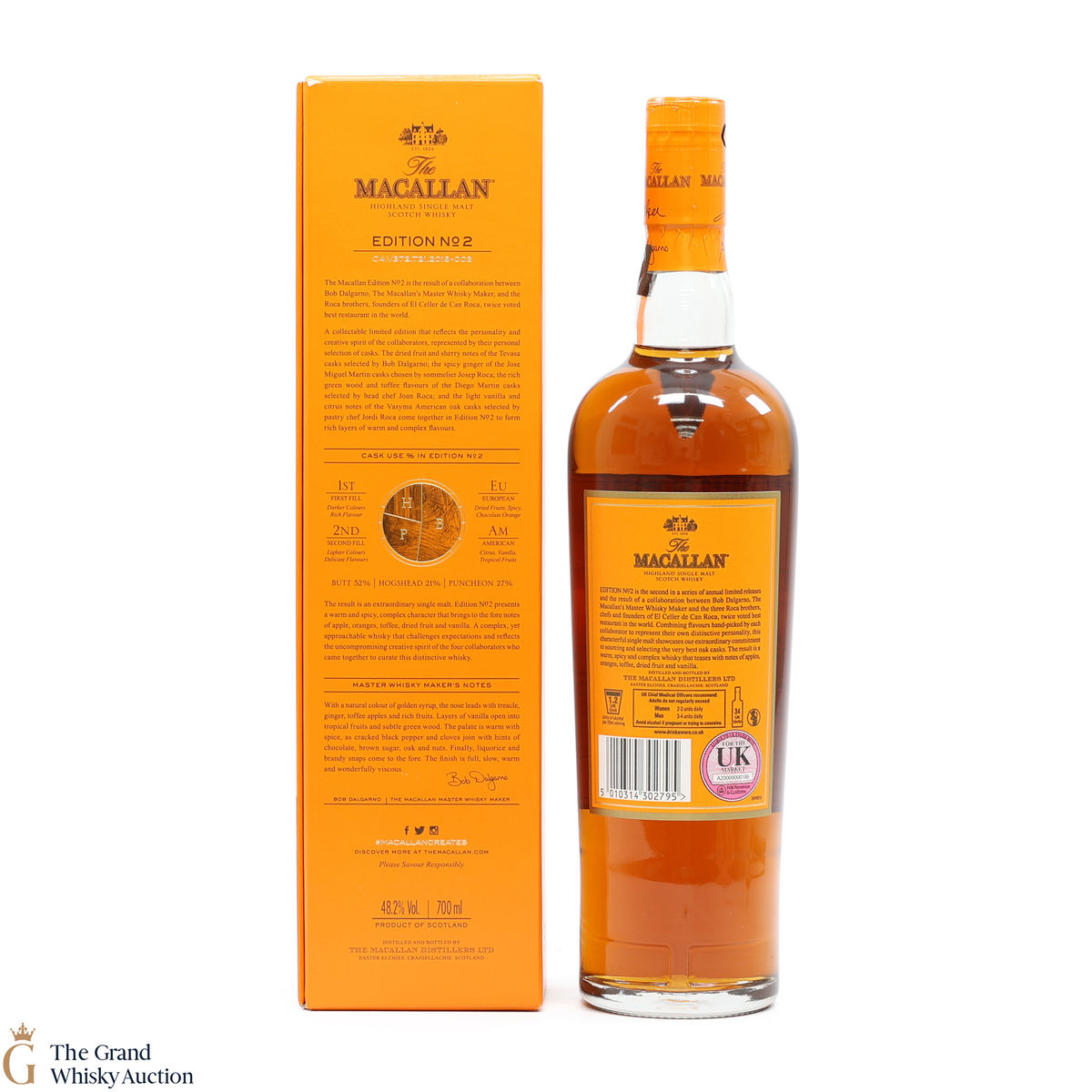 This is the second release from the Macallan Edition series. Edition No.2 is a collaboration between Macallan's master blender Bob Delgarno and legendary Spanish chefs Joan, Josep and Jordi Roca. The Rocas are the three brothers behind El Celler de Can Roca (named Best Restaurant in the World twice by Restaurant magazine). This single malt was drawn from a combination of sherry puncheons, butts and refill hogsheads.