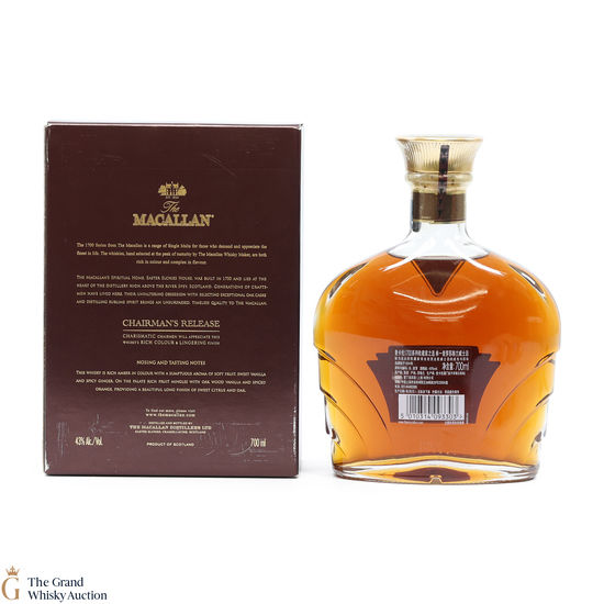 The Chairman's Release is considered the flagship of Macallan's 1700 series. The series takes its name from the year that Easter Elchies House, the home of The Macallan, was built.