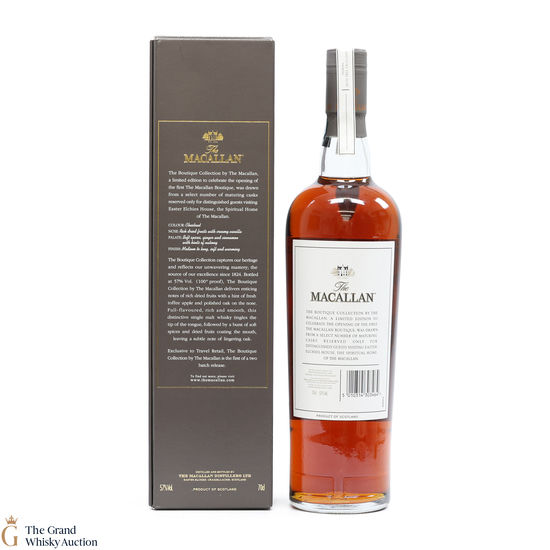 Bottled at 100 proof, The Macallan Boutique Collection 2016 bottling was drawn from a selection of matured casks reserved only for distinguished guests visiting Easter Elchers House.