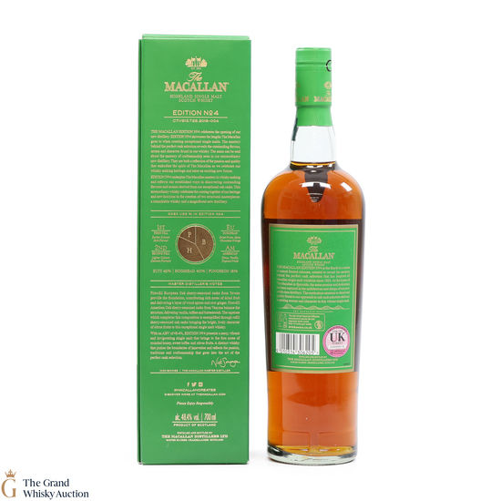 The fourth release in the Edition Series from The Macallan, this Speyside single malt is a celebration of the distillery's whisky making heritage, combining a unique selection of oak cask styles. Edition No.4 reflects the craftsmanship and pioneering design of the new Macallan distillery.