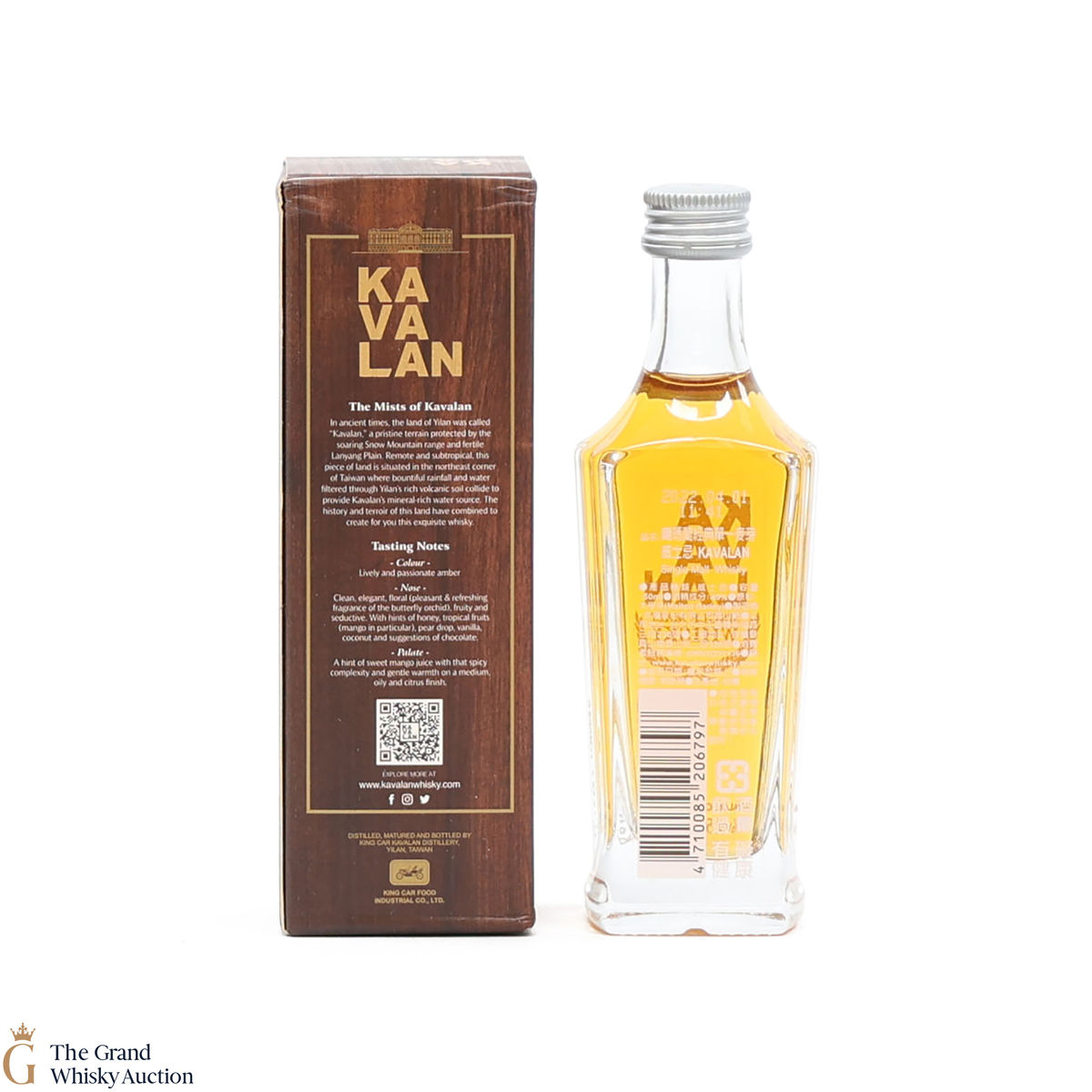 Kavalan Single Malt Whisky - this lot includes a 5cl bottling of Kavalan Single Malt, bottled at 40% ABV.