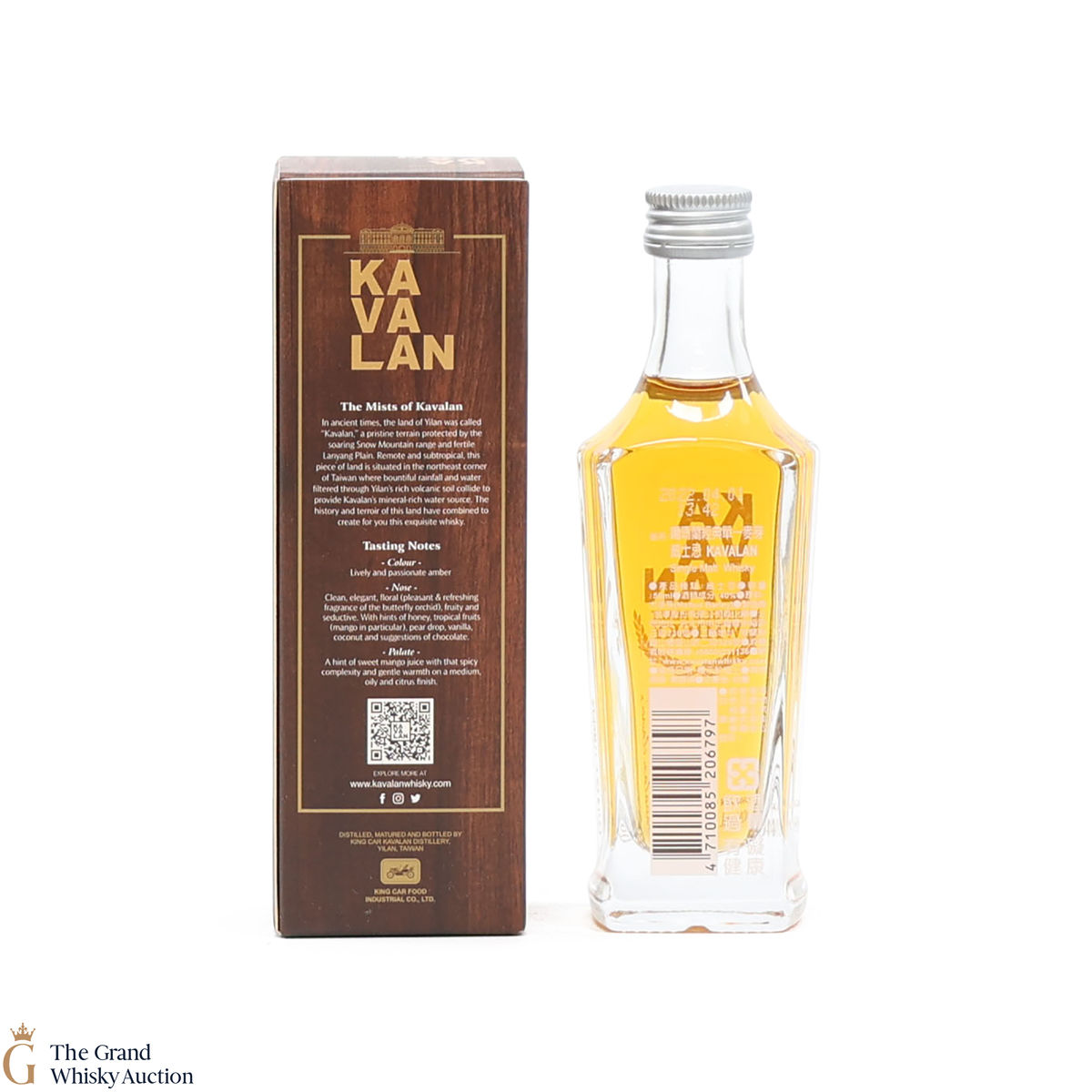 Kavalan Single Malt Whisky - this lot includes a 5cl bottling of Kavalan Single Malt, bottled at 40% ABV.