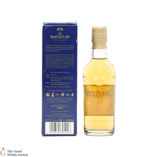 - Macallan - 12 Year Old - Double Cask - 5cl, 40% This 12-Year-Old Macallan was matured in a combination of American and European Sherry oak for a minimum of 12 years. It is part of the Macallan Double Cask range, which marries the classic Macallan style and the sweetness of American oak.