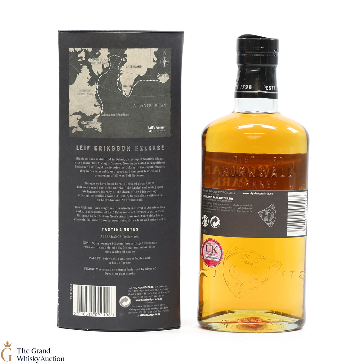 Launched in March 2010, for the travel retail market, Highland Park Leif Eriksson Limited Edition was released to celebrate the first European to reach America over a thousand years ago. The single malt was matured in American oak casks, both ex-bourbon and ex-sherry in recognition of Leif Eriksson, a pioneering Viking explorer, as the first European man to set foot on American soil.