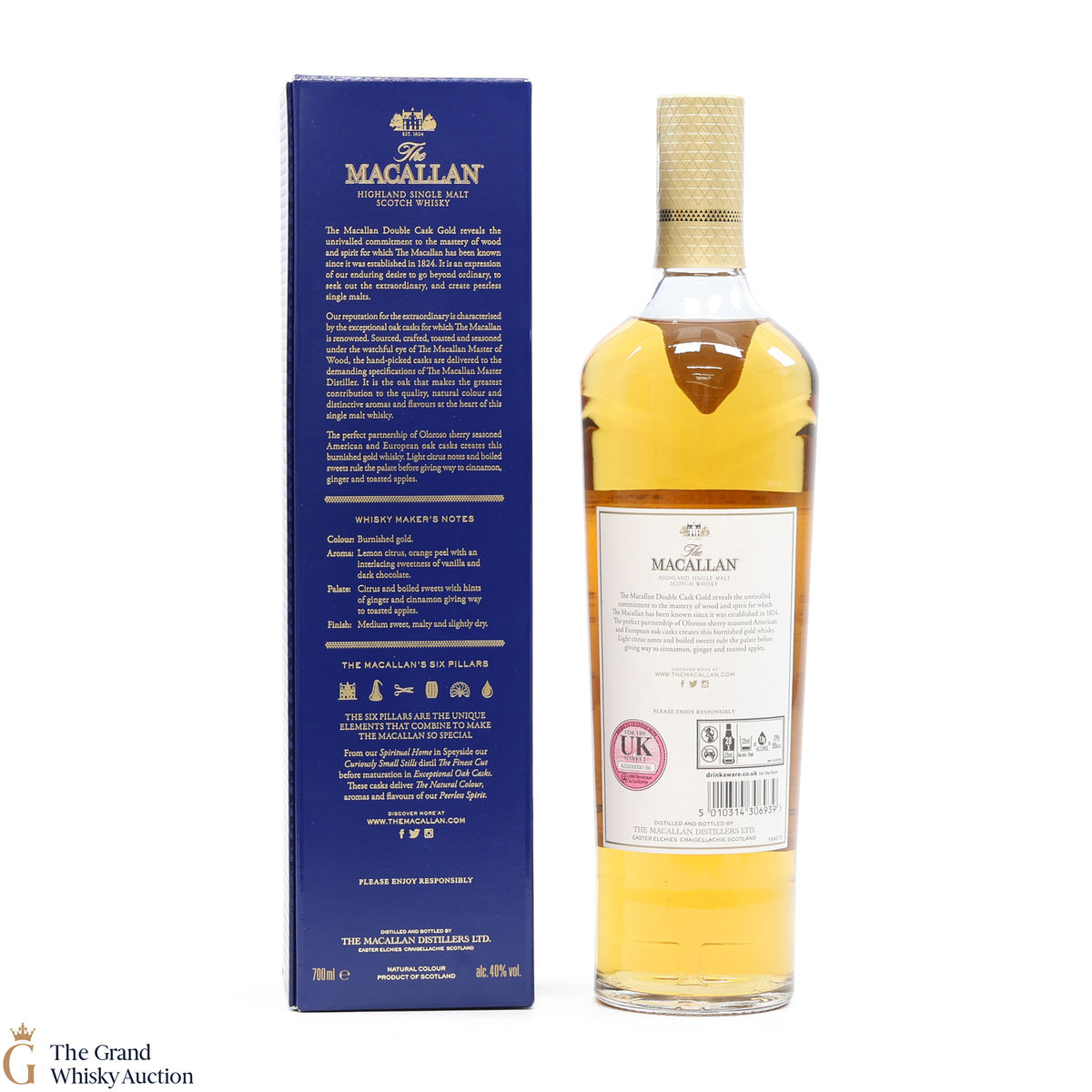 Macallan Gold was first introduced in 2012 as part of the distillery's 1824 range of non-age statement expressions, before being renamed Macallan Gold Double Cask in 2018 as part of the new core range. Matured in a combination of first fill and refill American oak and European oak sherry casks to create an incredibly smooth and rich single malt. Soft gold in colour, this is the lightest expression of the Macallan range, but still packed with typical Speyside Macallan flavours.