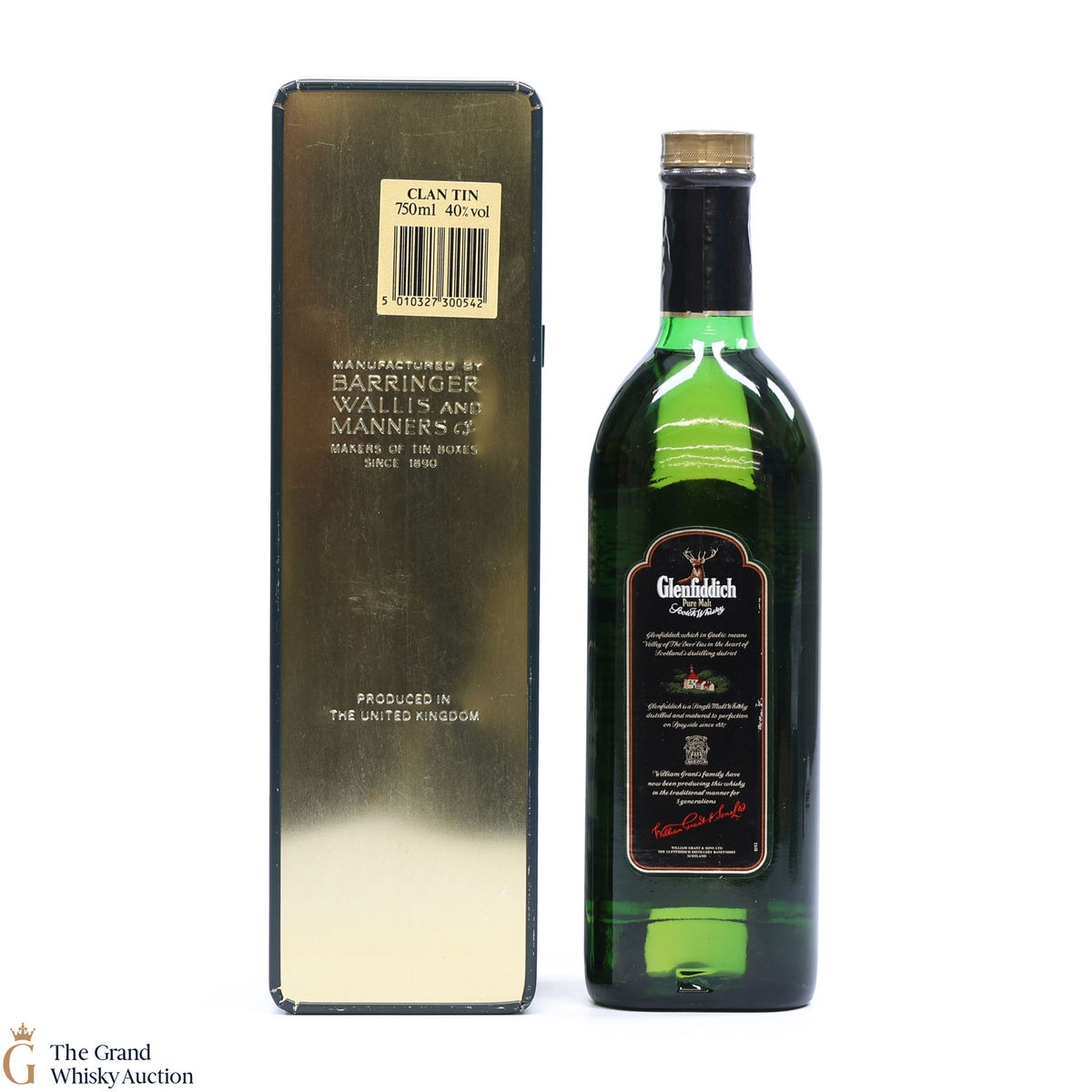 A collectable Glenfiddich single malt Scotch whisky from the 1980s in a Clans Of The Scottish Highlands presentation tin featuring Clan MacPherson.