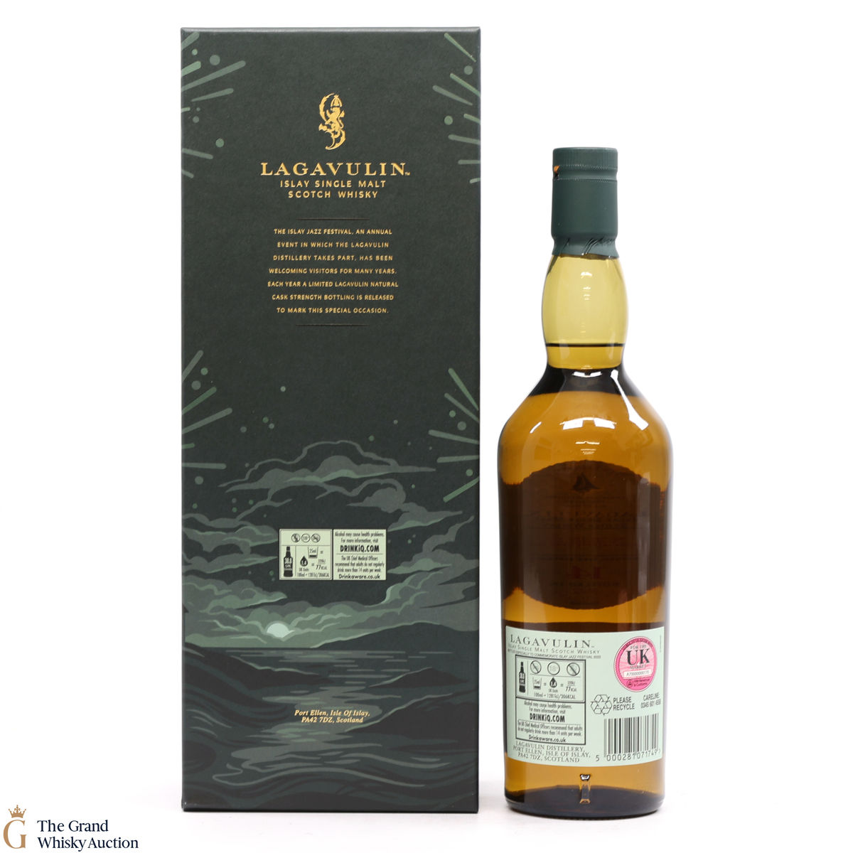 A bottling only released at the distillery bottled especially to commemorate the 2022 Jazz Festival on Islay. This is one of only 3000 bottles that has uniquely been matured in refill American oak and then finished in brandy seasoned hogsheads. This has added an unexpected twist of sweetness to typical Lagavulin smokiness. Bottled at the cask strength of 55.4%.