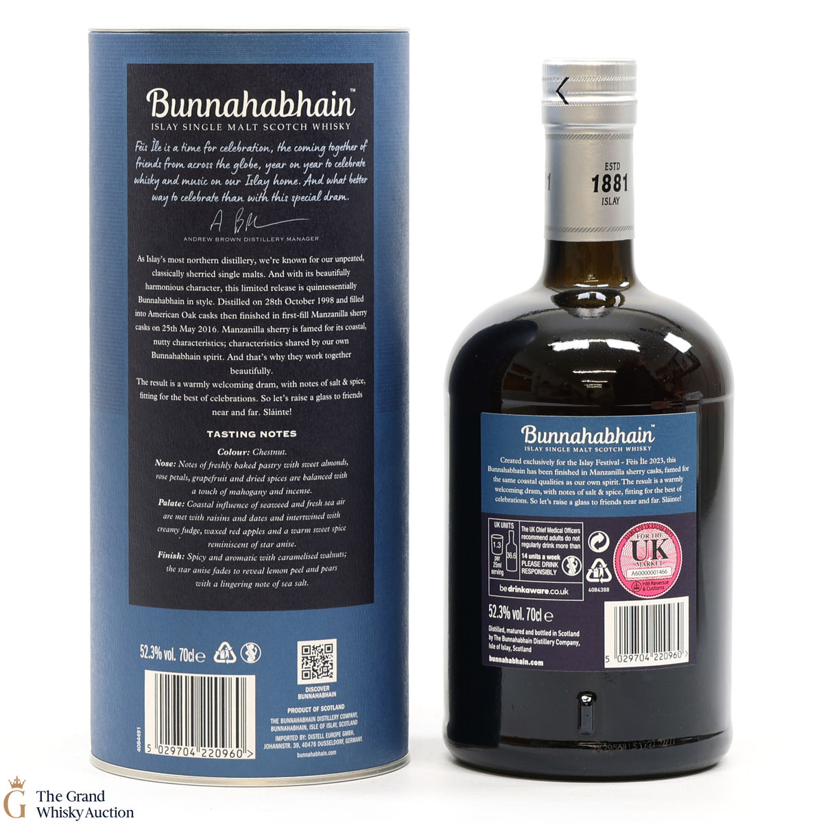 One of the releases for Fèis Ìle 2023, this dram was distilled in October 1998, filled into American Oak Casks then finished in first-fill Manzanilla sherry casks in May 2016 onwards.