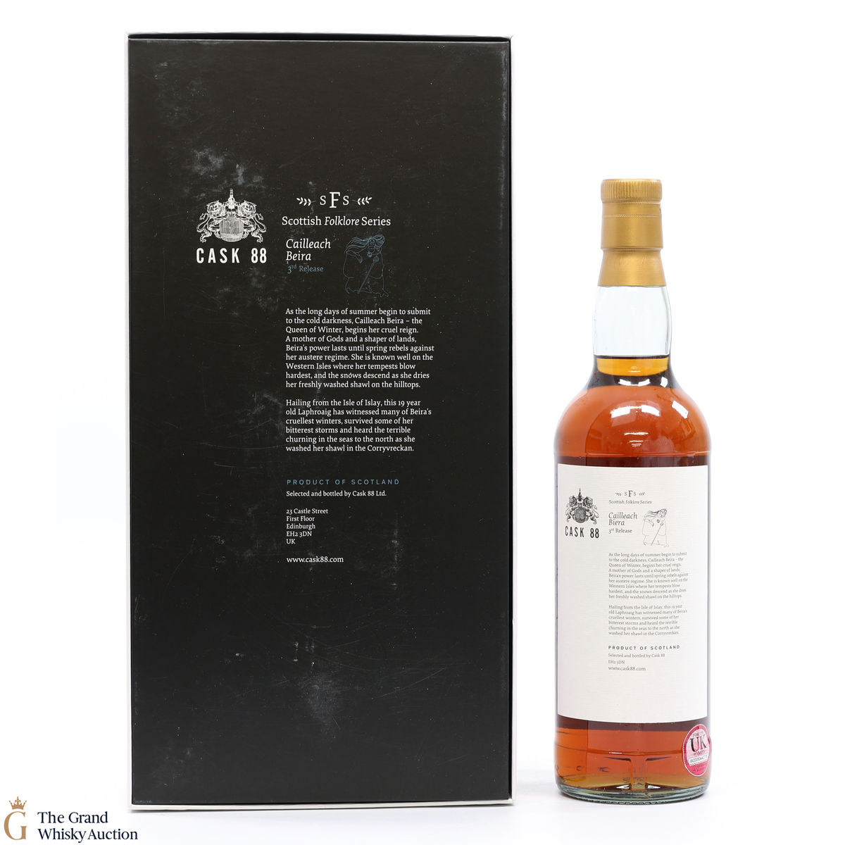 This is the 3rd release of the Scottish Folklore Series with a bottling of a 19-year-old Laphroaig Malt by Cask 88. It was distilled on 14th January 2001 and matured in a Chateau Leoville-Las Cases Bordeaux cask #1700369.