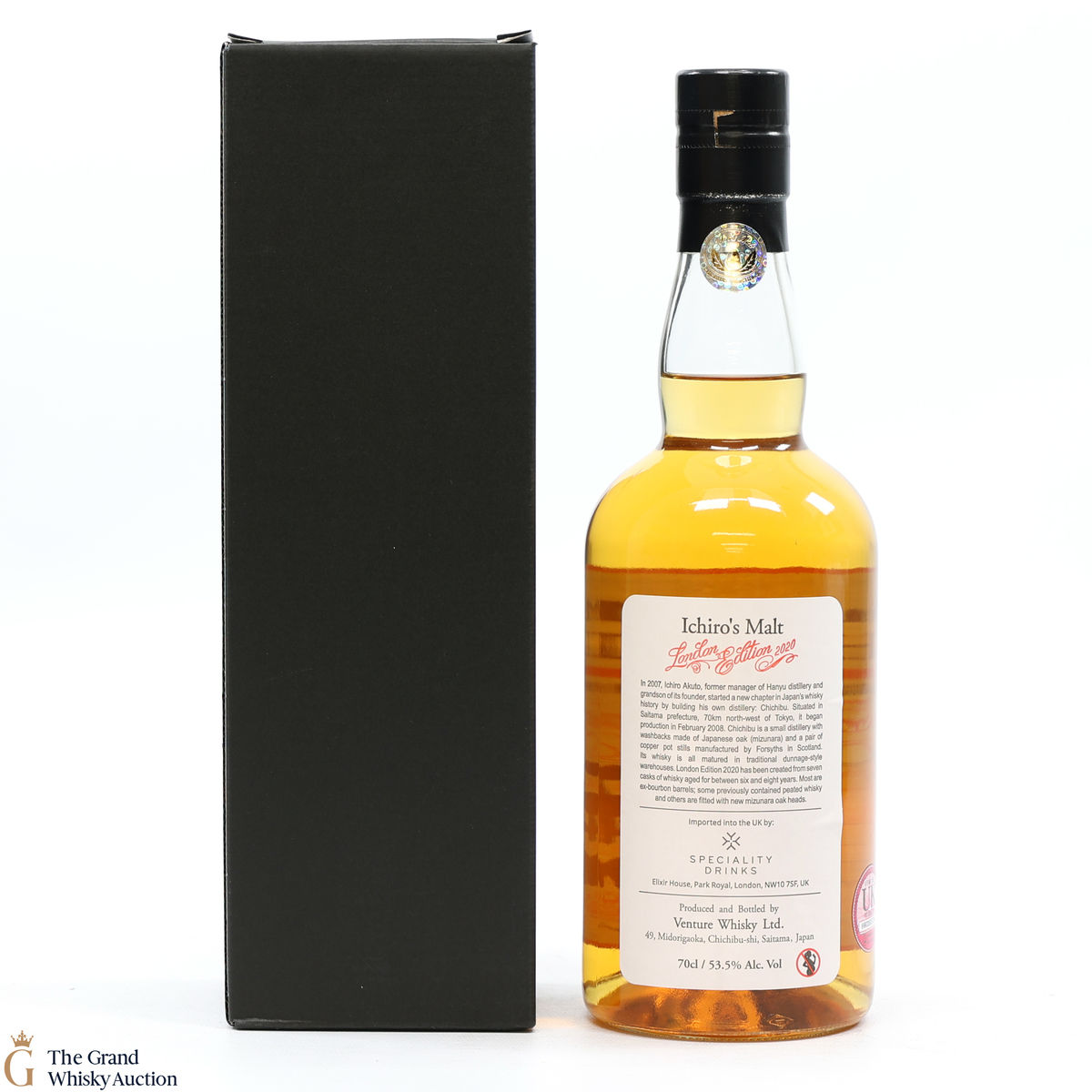 One of just 1736 bottles of the highlight sought after limited-edition Chichibu London (2020) bottlings from the Chichibu Distillery in Japan. Aged for six to eight years and vatted from a total of seven casks including some ex-bourbon barrels previously used to mature peated whisky and casks with new, mizunara-oak ends. Bottled at the cask strength of 53.5% ABV.