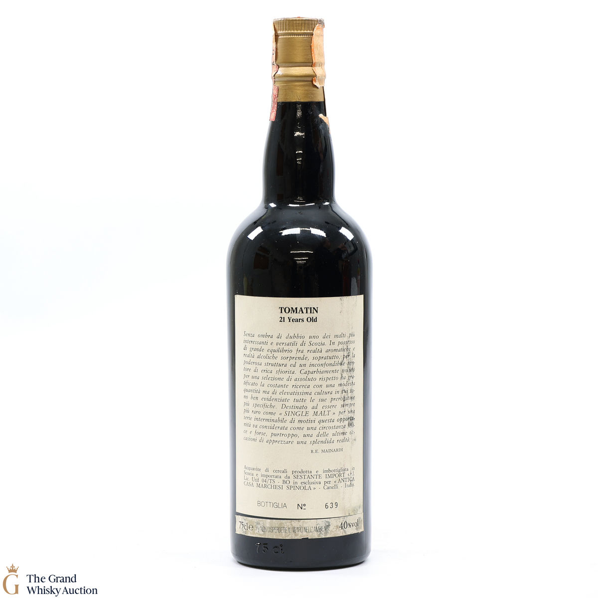 This 21-Year-Old Tomatin 1968 vintage was released in a 'kilted' bottle by Sestante for Spinola in 1990. This is a 75cl bottling.