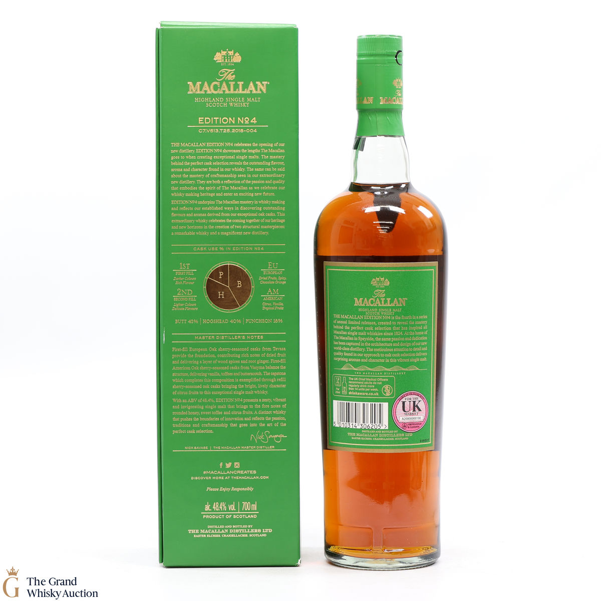 The fourth release in the Edition Series from The Macallan, this Speyside single malt is a celebration of the distillery's whisky making heritage, combining a unique selection of oak cask styles. Edition No.4 reflects the craftsmanship and pioneering design of the new Macallan distillery.