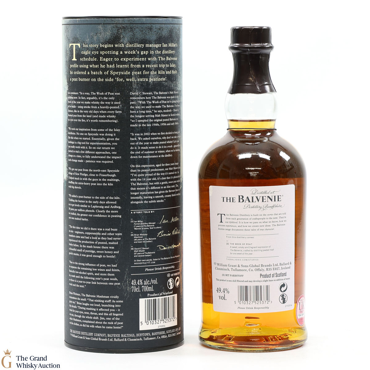 Distillery manager Ian Millar installed a peat burner at Balvenie and since 2002, the distillery has dedicated one week each year to run heavily peated barley through the whisky-making process creating a distinctly different Balvenie. The result is a classic Balvenie expression balancing sweet peat smoke with notes of citrus and honey.