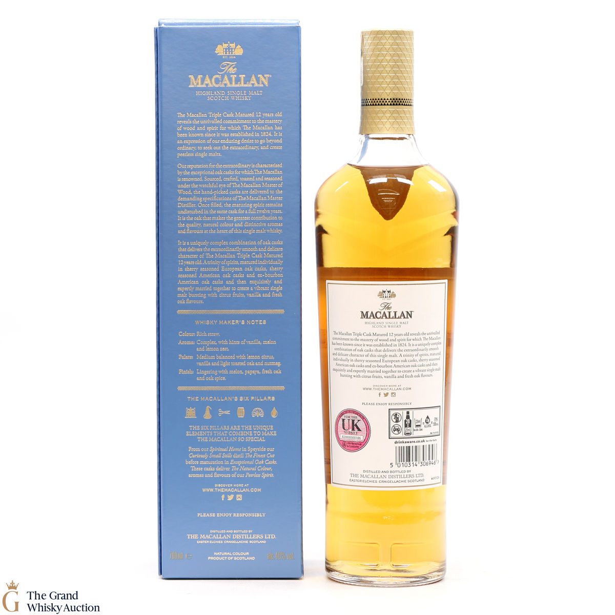 The 12 year old single malt was matured for 12 years and drawn from a combination of European sherry seasoned casks, American sherry seasoned casks and American ex-bourbon casks. It is part of Macallan's Triple Cask range which was launched in 2018, taking the place of the Fine Oak range.