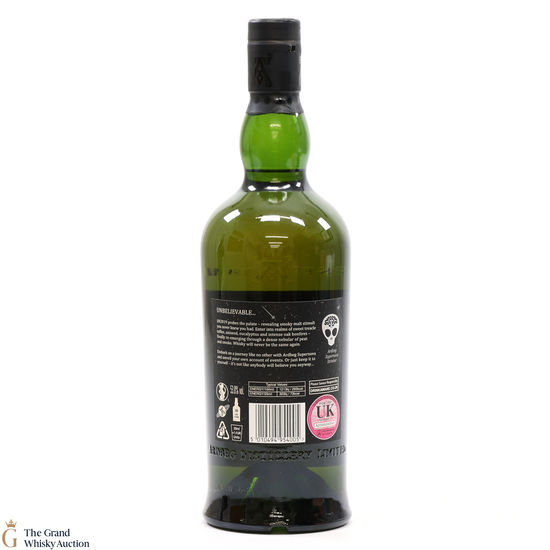 Exclusively released to Ardbeg Committee members in September 2019, this is the fifth and latest release of the Ardbeg Supernova. Matured in ex-Bourbon casks, this limited edition, non-age- statement release is described as having aromas of ‘pungent aniseed, menthol and eucalyptus’, with a ‘nebula of bonfires, soot, charred oak, birch tar and menthol’ on the palate.
