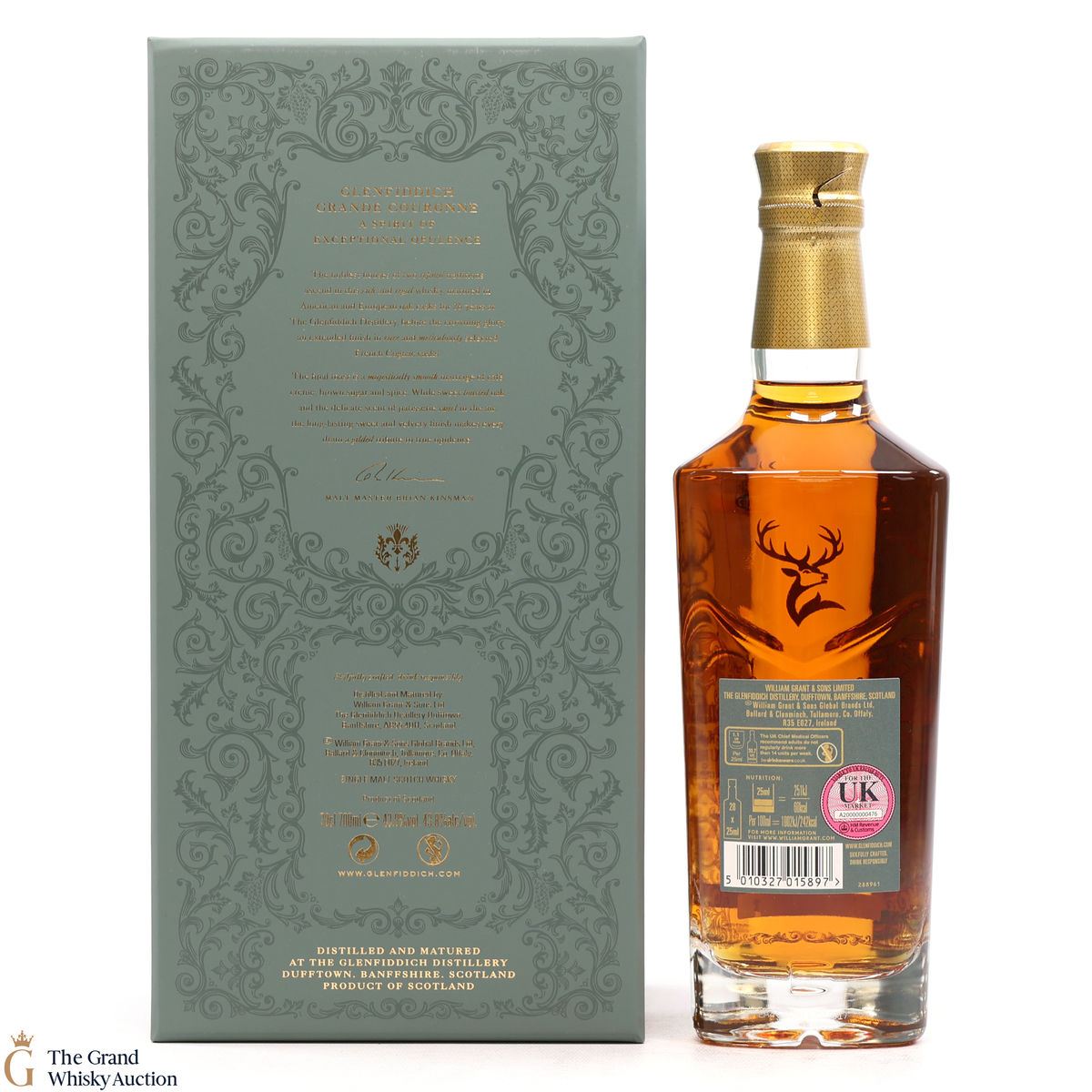 This 26 year old single malt is the highlight of the Glenfiddich Grand Series, whiskies which celebrate the merging of two worlds coming together. After maturing at the Glenfiddich Distillery, Grande Couronne has an extended two-year finish in rare French Cognac casks.