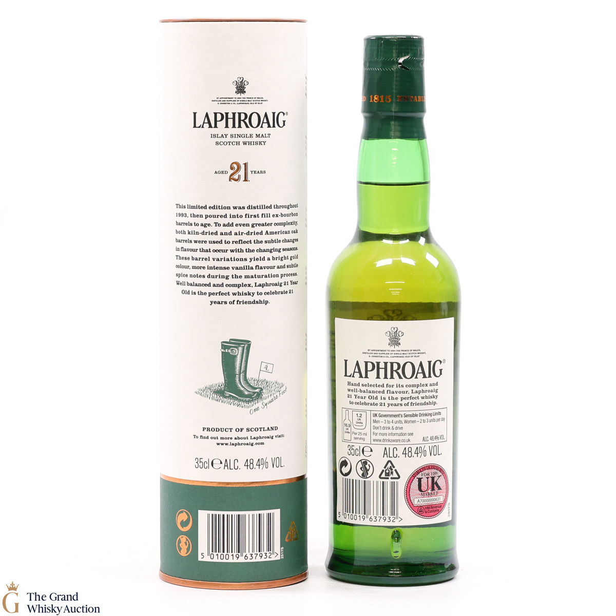A very special release from 2015 that was made available online to members of the Friends of Laphroaig group. This is a 35cl bottling of Laphroaig 21 Year Old.