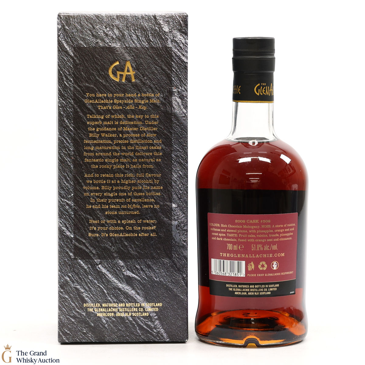 Glenallachie cask #508 was filled on the 3rd July 2008 and matured for 11 years in a PX Puncheon cask and was bottled in Feburary 2020. There is only 773 bottles.