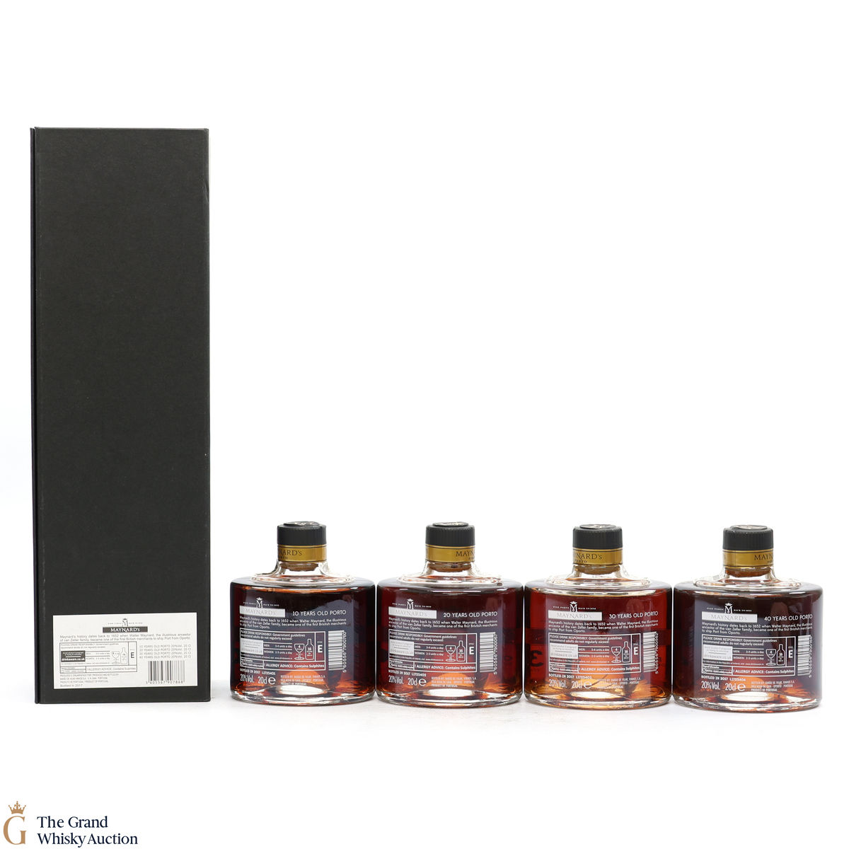 A selection of 4 Maynard's Port bottles in a beautifully presented box, including 10 Year Old, 20 Year Old, 30 Year Old and 40 Year Old. Bottled in 2017.