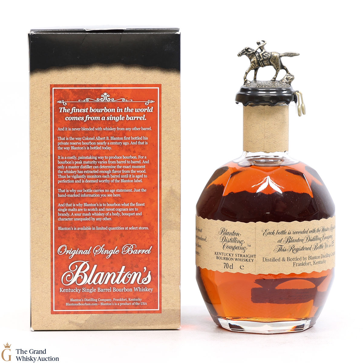 PLEASE NOTE: The wax seal on Blanton's bottles are prone to cracking in transit due to their design. Therefore, as stated in our T&C’s, we do not and will not accept liability should the seal be breached, broken, split or leak in transit. Additionally, please know due to the design of the internal cardboard packaging that surrounds the top of the bottles, it too may be torn. By bidding on this lot you have understood this to be true. Insurance is for complete breakage or loss in transit only.