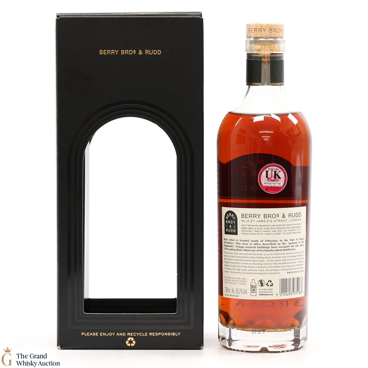 Distilled at the Blair Athol Distillery in the Highlands, this single-cask whisky matured in a California wine barrique from 2009 to 2021 before being bottled at 55.2% ABV by the independent bottler Berry Bros. & Rudd. Only 234 bottles were produced.