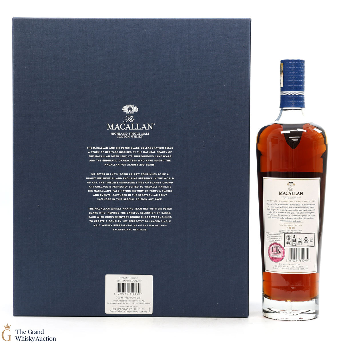 Part of The Anecdotes of Ages Collection, this is an extraordinary art and whisky collaboration with Sir Peter Blake. Being the third collaboration between the Macallan Distillery and Sir Peter Blake, this single malt was created to commemorate Sir Peter Blake's visit to The Macallan Estate. An Estate, a Community and a Distillery tells the story of some of the colourful characters from the distilleries past and present and features a label designed by Sir Peter Blake.