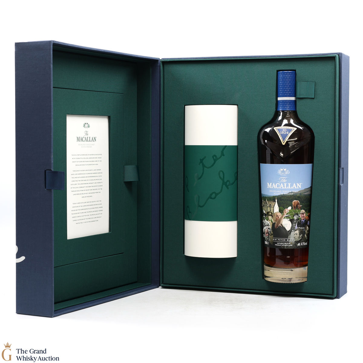 Along with this unique bottle of whisky is a scroll of artwork showing Sir Peter Blake's distinct style and a certificate detailing the history and heritage on which Sir Peter's art was based. There is also a piece of tracing paper which provides information on each character from The Macallan's history that Sir Peter chose to include in his art.